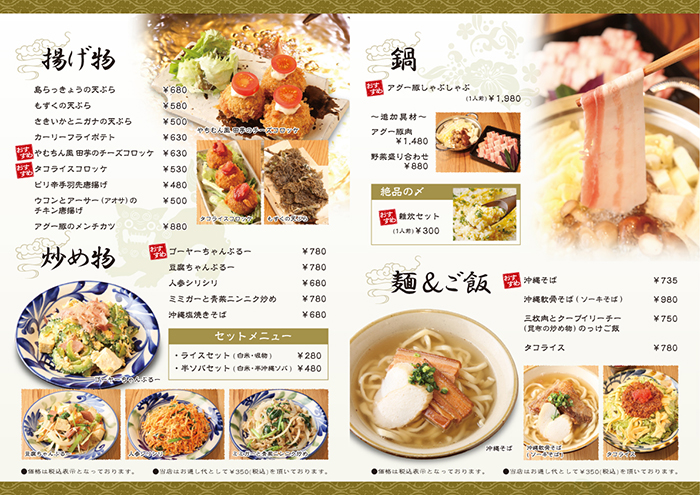 沖縄家庭料理「やちむん」様 メニュー メニューチラシ・フライヤーポスターパンフレット・冊子ショップカード看板タペストリーPOPキッチンカー 関連記事 READ MORE メニュー やきとり居酒屋「焼巻き屋」様 メニュー READ MORE メニュー 創作酒場「ゆきち」様 メニュー READ MORE メニュー 「鶏ま乾杯」様 メニュー READ MORE メニュー ダイニングバー「ORCA」様 メニュー 制作実績一覧はこちら