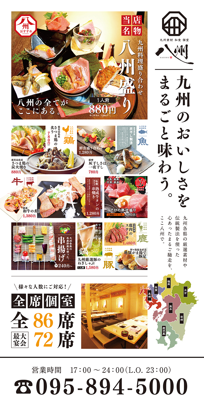 九州素材・郷土料理・和食「八州」様 タペストリー メニューチラシ・フライヤーポスターパンフレット・冊子ショップカード看板タペストリーPOPキッチンカー 関連記事 READ MORE タペストリー 「焼肉ごりら」様 タペストリー READ MORE タペストリー 「ハングリーヘブン 福岡西新店」様 タペストリー READ MORE タペストリー 創作酒場「ゆきち」様 店頭幕 READ MORE タペストリー 「藁×炭×肴 つどいや」様 タペストリー 制作実績一覧はこちら