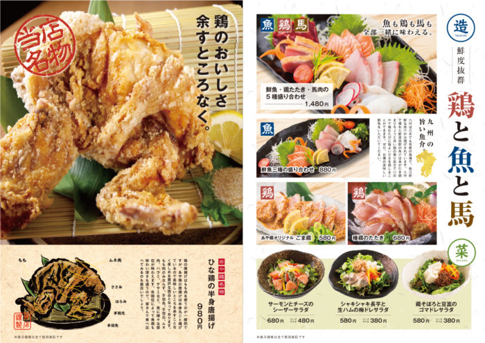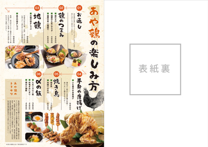 九州地鶏料理居酒屋「あや鶏」様 メニュー メニューチラシ・フライヤーポスターパンフレット・冊子ショップカード看板タペストリーPOPキッチンカー 関連記事 READ MORE メニュー 焼鳥と魚「博多いちえ」様 二つ折りメニュー READ MORE メニュー 九州炙り酒場「いち会」様 メニュー READ MORE メニュー 「古民家かふぇ美土里」様 メニュー READ MORE メニュー 「中国料理と美味しいお酒 まほろば 」様 メニュー 制作実績一覧はこちら