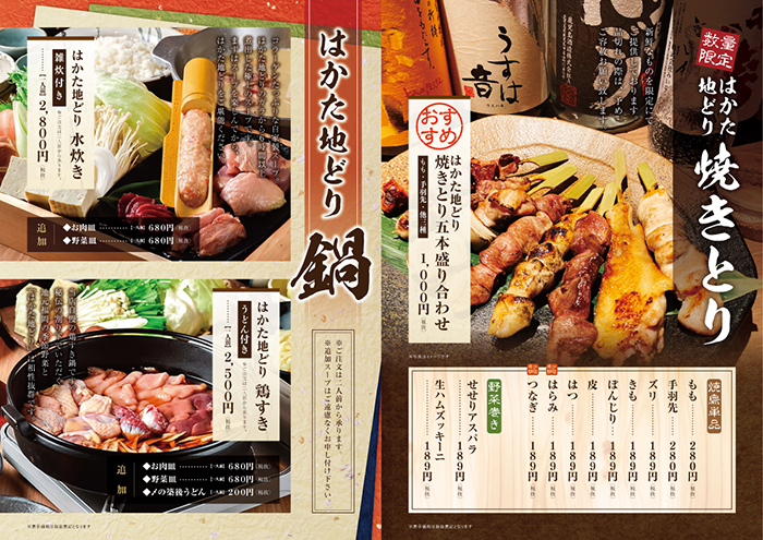 はかた地どり専門料理「福栄組合」様 メニュー メニューチラシ・フライヤーポスターパンフレット・冊子ショップカード看板タペストリーPOPキッチンカー 関連記事 READ MORE メニュー 「山笠ラーメン」様 メニュー READ MORE メニュー 「くろ屋~離れ~」様 ランチ&名物メニュー READ MORE メニュー 大衆焼肉「かまど屋」様 ランチメニュー READ MORE メニュー 「とりやきんぐ」様 メニュー 制作実績一覧はこちら