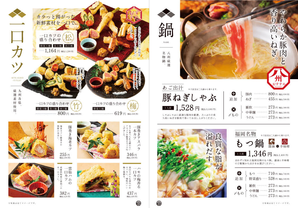 九州素材・郷土料理・和食「八州」様 メニュー メニューチラシ・フライヤーポスターパンフレット・冊子ショップカード看板タペストリーPOPキッチンカー 関連記事 READ MORE メニュー 個室創作ゆず料理「ゆずの小町」様 メニュー READ MORE メニュー 「Noza Caza」様 卓上メニュー READ MORE メニュー ダイニングバー「One Time」様 メニュー READ MORE メニュー びっくり鉄板&焼鳥「頂」様 メニュー 制作実績一覧はこちら