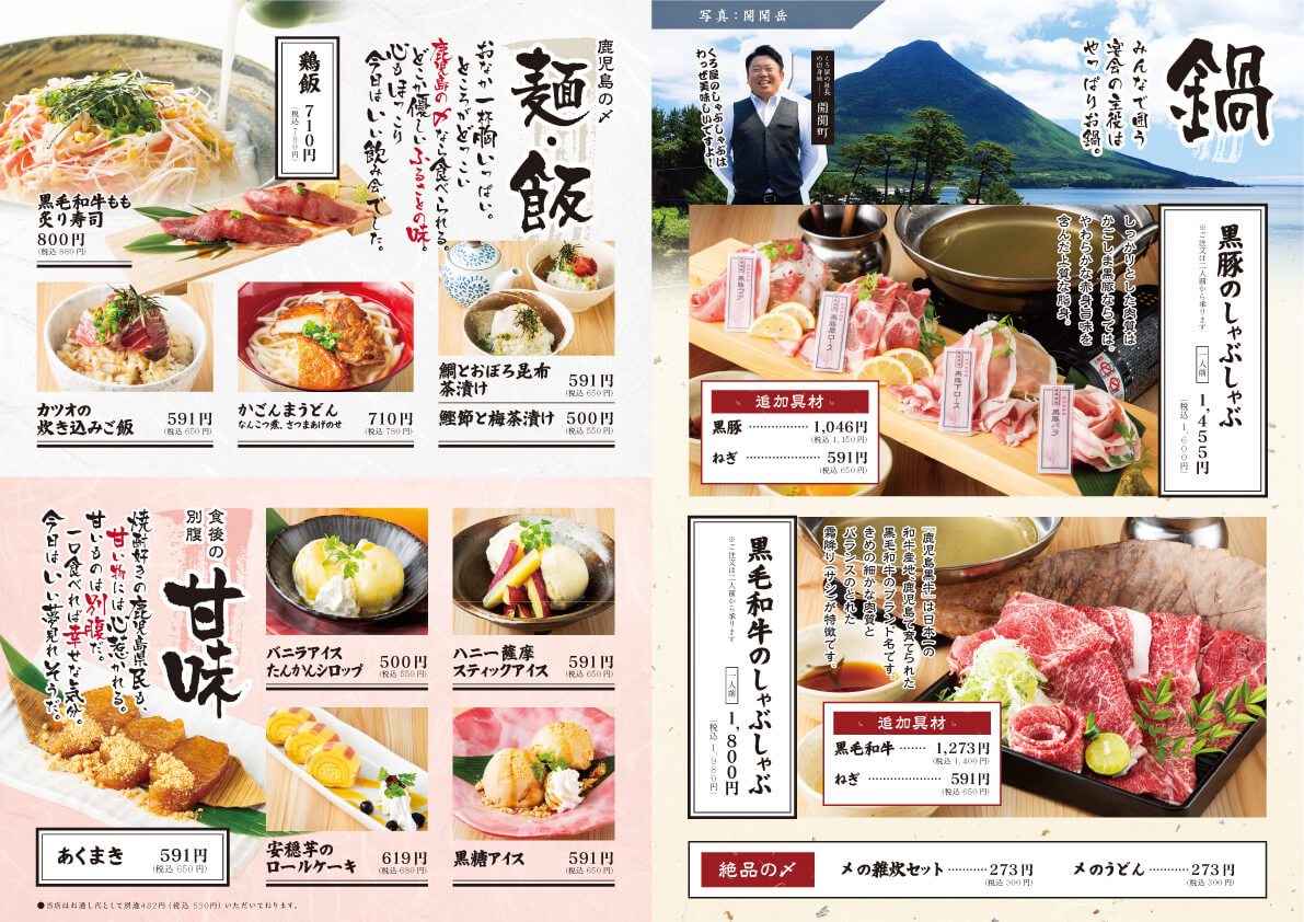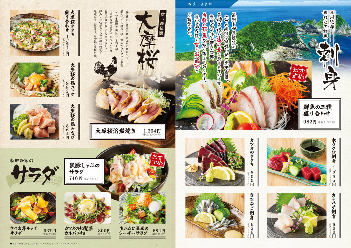 鹿児島の台所「くろ屋」様 メニュー メニューチラシ・フライヤーポスターパンフレット・冊子ショップカード看板タペストリーPOPキッチンカー 関連記事 READ MORE メニューPOP 「博多おっしょい」様 おすすめメニュー READ MORE メニュー ダイニングバー「ORCA」様 メニュー READ MORE メニュー 「ナナクマキッチン」様 メニュー READ MORE メニュー 「大衆焼肉 かまど屋」様 三つ折りメニュー 制作実績一覧はこちら