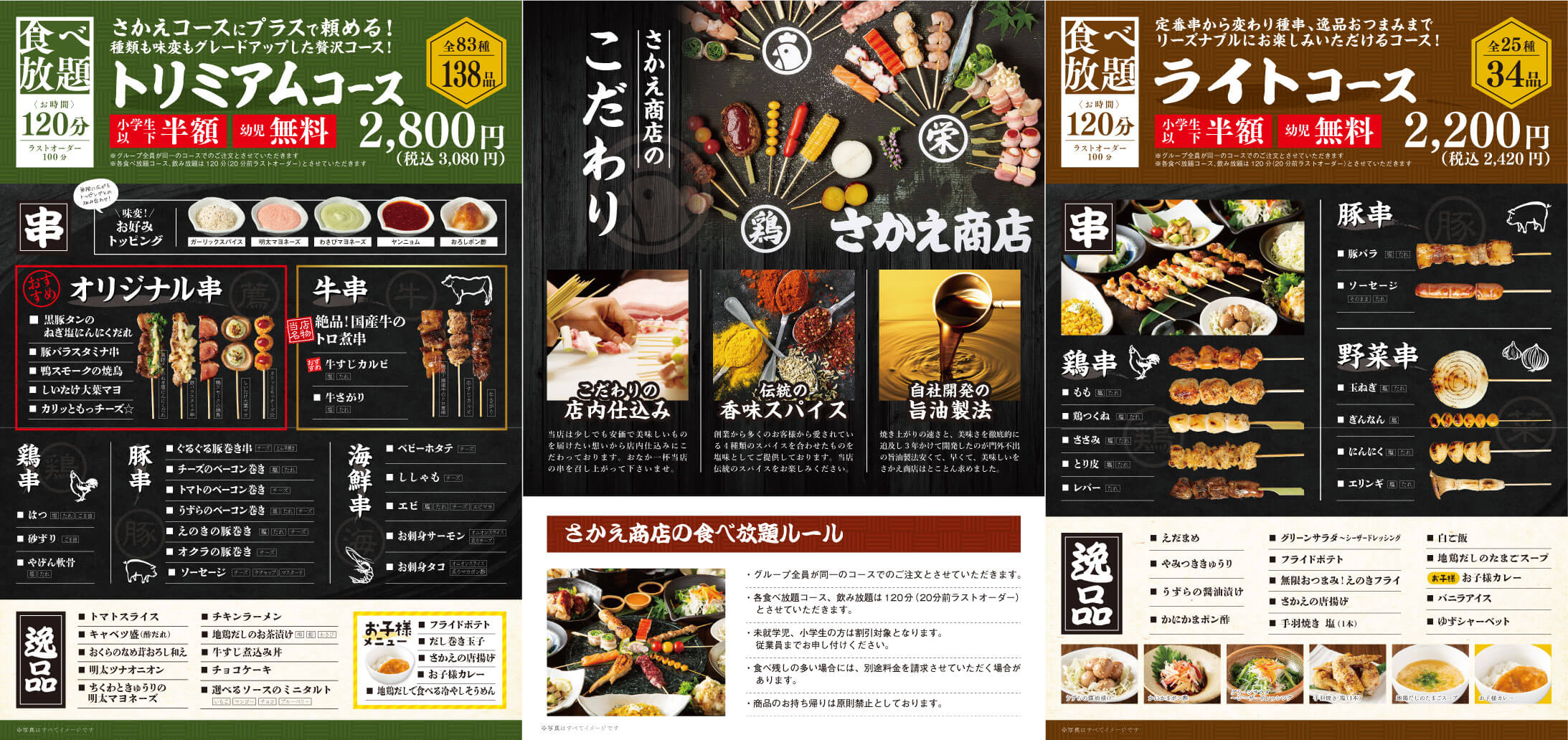 「さかえ商店」様 メニュー メニューチラシ・フライヤーポスターパンフレット・冊子ショップカード看板タペストリーPOPキッチンカー 関連記事 READ MORE メニュー 炭火やきとり「一翠」様 メニュー READ MORE メニュー 大衆焼肉「かまど屋」様 二つ折りメニュー READ MORE メニュー 九州リゾートダイニング「RED LINE」様 メニュー READ MORE メニュー 韓国料理Bar メニュー 制作実績一覧はこちら