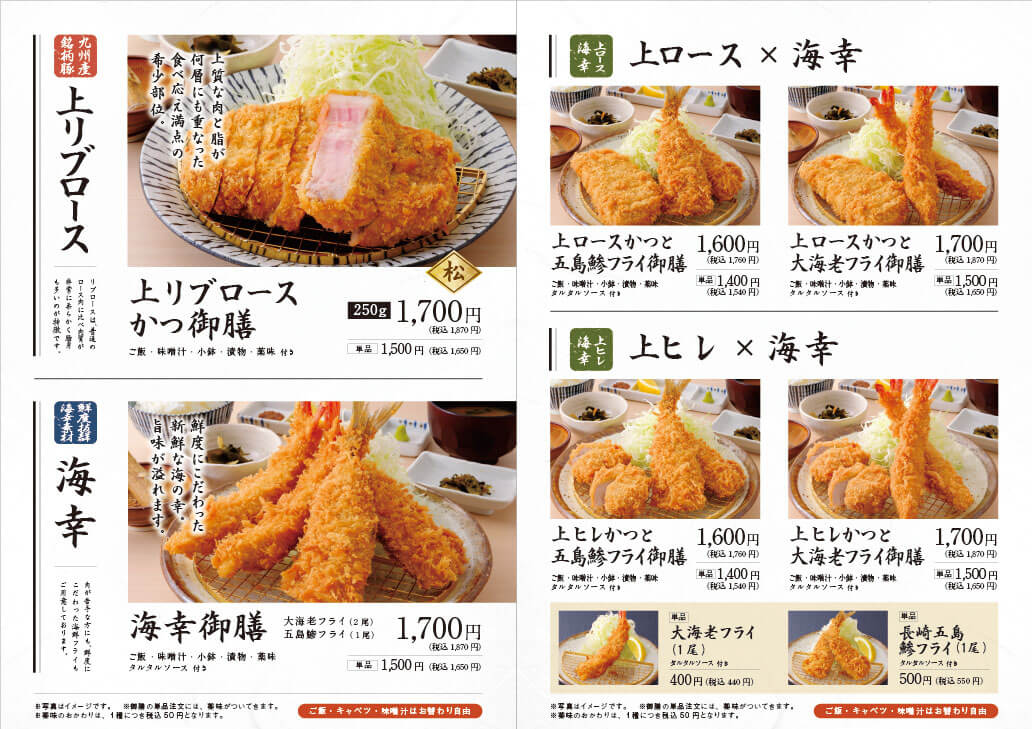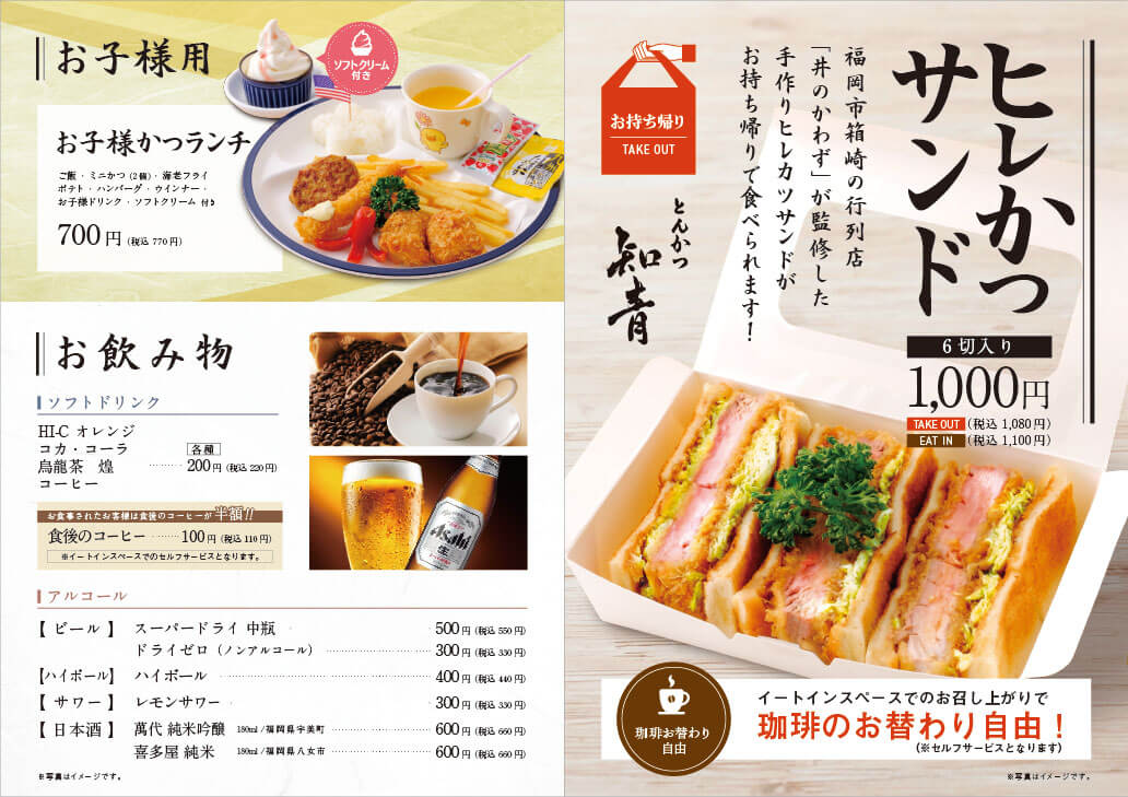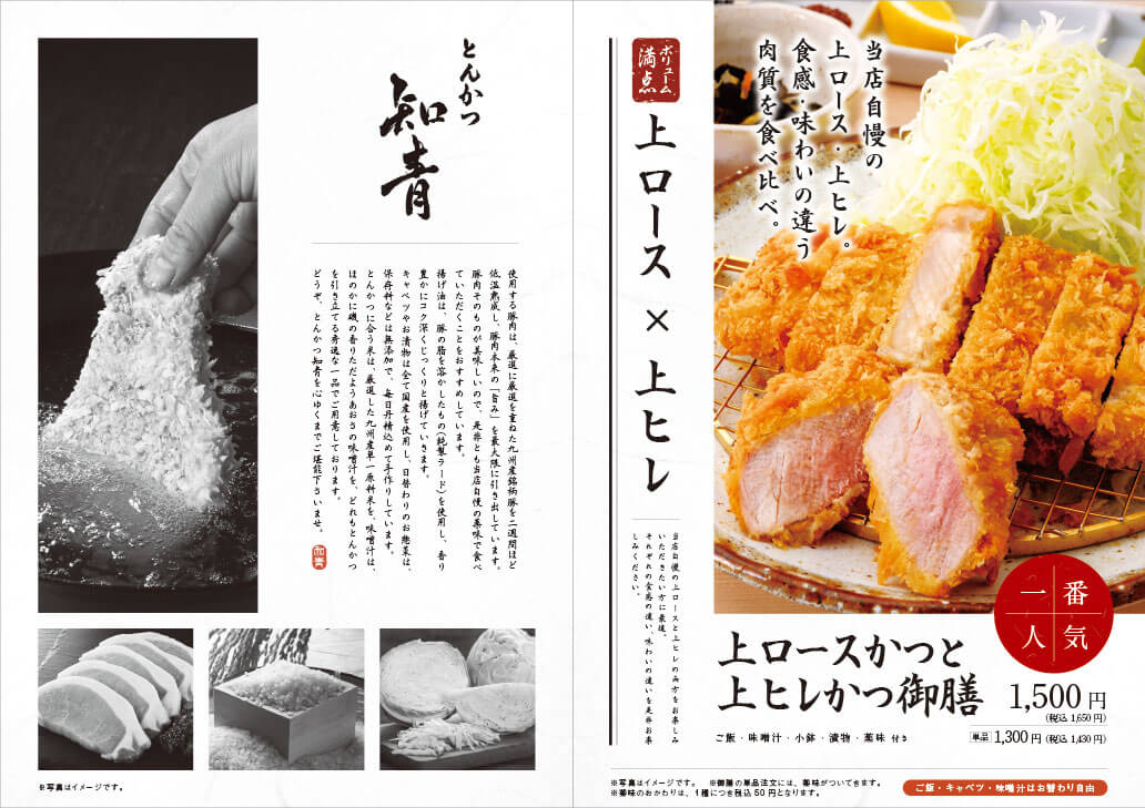 「とんかつ知青 ららぽーと福岡店」様 メニュー メニューチラシ・フライヤーポスターパンフレット・冊子ショップカード看板タペストリーPOPキッチンカー 関連記事 READ MORE メニュー 「峠の釜めし食堂 鶏と卵」様 メニュー READ MORE メニュー 大衆焼肉「かまど屋」様 二つ折りメニュー READ MORE メニュー 鹿児島の台所「くろ屋」様 メニュー READ MORE メニュー 「くろ屋~離れ~」様 ランチ&名物メニュー 制作実績一覧はこちら