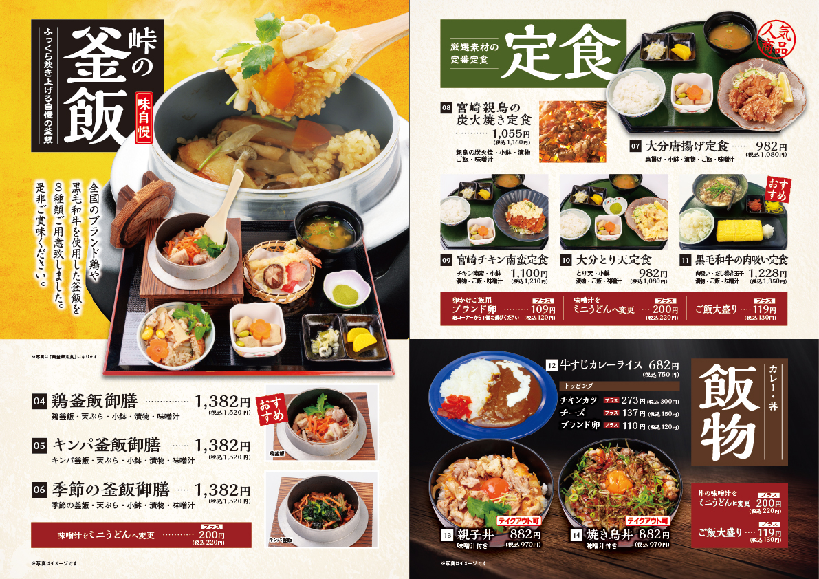 「峠の釜めし食堂 鶏と卵」様 メニュー メニューチラシ・フライヤーポスターパンフレット・冊子ショップカード看板タペストリーPOPキッチンカー 関連記事 READ MORE メニュー 大衆焼肉「かまど屋」様 ランチメニュー READ MORE メニュー 創作和食居酒屋「かりん」様 ドリンクメニュー READ MORE メニュー 「とりやきんぐ」様 メニュー READ MORE メニュー ダイニングバー「One Time」様 メニュー 制作実績一覧はこちら