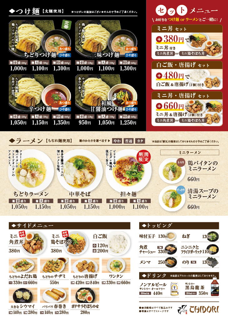 「つけ麺 ちどり」様 メニュー メニューチラシ・フライヤーポスターパンフレット・冊子ショップカード看板タペストリーPOPキッチンカー 関連記事 READ MORE メニュー 「麺屋優光 福岡天神店」様 メニュー READ MORE メニュー 「ハンバーガーショップ富吉」様 メニュー READ MORE メニュー 「ひのくに酒場 炭まかせ」 様 メニュー READ MORE メニュー 「よか鶏」様 ドリンクメニュー 制作実績一覧はこちら